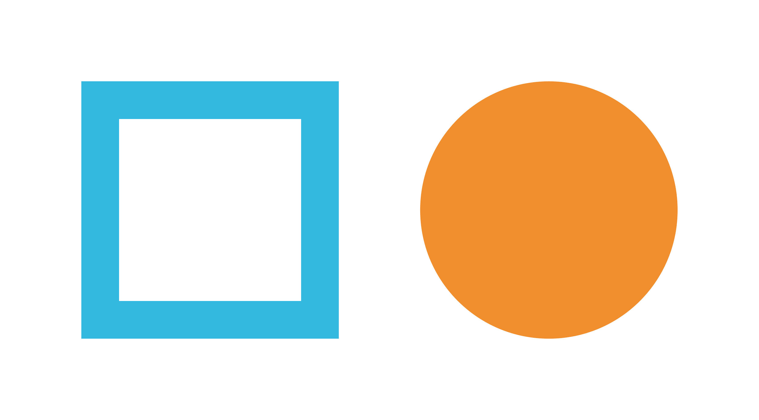 A blue square outline next to a solid orange circle on a white background.